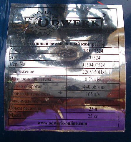безмасляный компрессор Odwerk TOF 7524 [URL=http://vfl.ru/fotos/87834599605725.html]