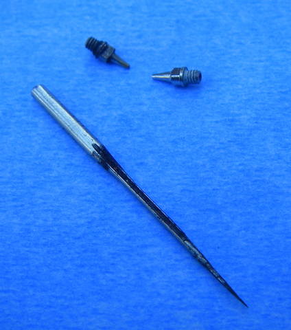 Однажды, после очередной переточки иглы на аэрограф и сетования на отвратительное качество китайского металла, пришла мне в голову мысль о замене низкокачественной китайской иголки на иглу из хорошей стали. Прикинул, где может быть хорошая подходящая нержавеющая сталь, конечно у медиков. А именно у ортопедов, которых хлебом не корми, дай навесить какую-нибудь шину Збаржа или прочую проволочную конструкцию на перелом… или у дантистов. А у меня как раз лежал кусок такой проволоки, по диаметру идентичной толщине иголки. Отрезал нужный кусок проволоки и заточил, после чего располировал до зеркального блеска. Попробовал – ну так… взял в руки, имею вещь :). [URL=http://vfl.ru/fotos/4936cd20988703.html]