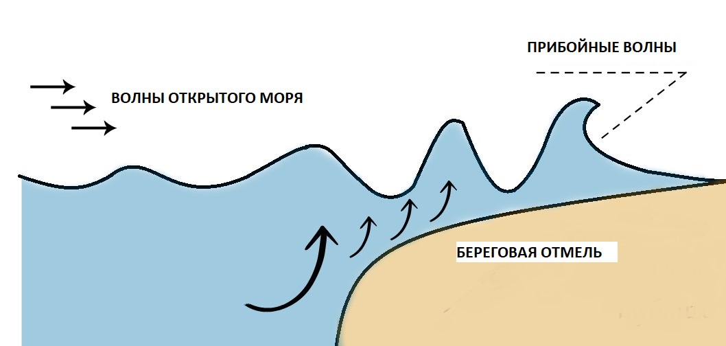 Чтобы сформировалась прибойная волна достаточной высоты, нужны следующие основные условия для ее формирования: