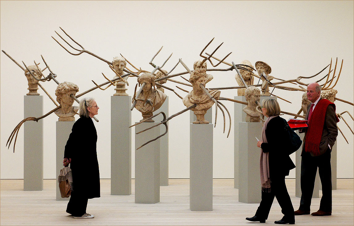 Что мне не нравится в таком современном искусстве, так это банальность: возьмем греческие скульптуры и что-нибудь с ними сделаем, очки солнцезащитные наденем, или покрасим в хром. Тут вот вилы в них воткнули. Дурное дело нехитрое в общем.