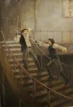 Картина написана на противопоставлении тёплых теней и холодного света из окна. Простой сюжет: дуэль конца 18 века. На работе две фигуры в неустойчивых позах. Композиция закручивается снизу вверх.