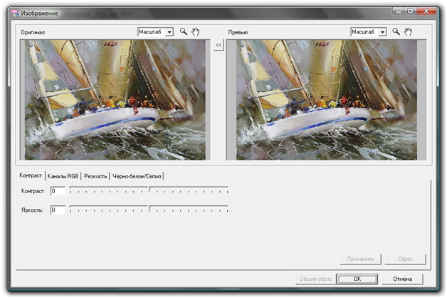 - настройка каналов RGB