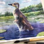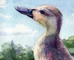 Картина "Первый полёт". Картина с утёнком написана акварельными красками на профессиональной акварельной бумаге 50% хлопок. 300 гр.