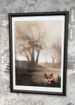 Графика обработана фиксативом. Оформлена в раму под стеклом.