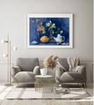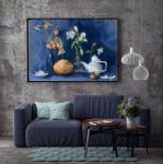 Ключевые слова: натюрморт с дыней натюрморт с цветами картина для кухни картина для гостиной картина на синем фоне картина с фруктами картина с цветами картина с физалисом картина с ракушкой картина с дыней
