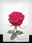 Яркая крупная роза дышит энергией и силой. Заряжает оптимизмом. Утверждает жизнь. Этот этюд написан с натуры. В нем подробно разобраны все лепестки, сложное строение этого прекрасного цветка. И передан интенсивный цвет. Он передан очень близко к натуре. И вот теперь эта роза никогда не увянет!