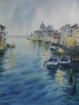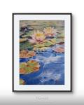 Нежная акварельная работа, передающая спокойствие утреннего пруда: пастельные розово-жёлтые кувшинки на фоне глубоких голубых и зелёных отражений воды. Тонкие прозрачные слои и мягкие переходы создают ощущение лёгкости и плавного движения поверхности.
