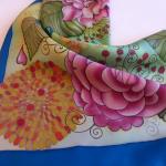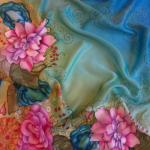 Ключевые слова: зеленый голубой розовый холодный батик батик шелк осенний букет букет пионы платок с пионами