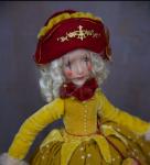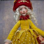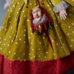 Авторская художественная кукла-клоун, в нарядном платье. В руках деревянный клоун, лицо, руки и ноги вылеплены и окрашены вручную.
