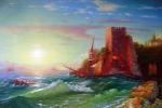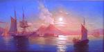Ключевые слова: парусная лодка корабль на рейде курящийся вулкан гора везувий блики луны на воде неаполитанский залив лунная ночь