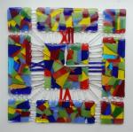 Часы в технике тиффани с элементами фьюзинга. Сделаны по мотивам произведений Кандинского. По желанию можно разработать любой другой сюжет к вашему интерьеру.