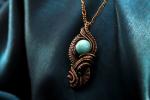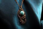 Подвеска из меди, запатинированной и отполированной вручную, амазонита и хризопраза.