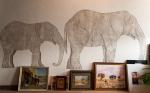 В основе оформления - могучие фигуры слонов. Спокойное по цвету, но активное по фактуре изображение статичных фигур создаёт атмосферу тишины и надёжности. Мощные силуэты вдохновляют своей силой, напоминают владельцу кабинета о путешествиях по миру. Проработка фактуры кожи животных добавляет белой стене рабочего кабинета уюта и теплоты, стену хочется трогать. Стена с изображением сильных животных дарит владельцу не только визуальное, но и тактильное удовольствие. В кабинете с белыми фактурными слонами на стене комфортно не только работать, решать сложные задачи, но и уединяться, отдыхать, созерцать.