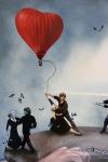 В работе четко прослеживается символика: воздушный шар в форме сердца олицетворяет путь любви, который только начинается, в то время как множество бабочек является отражением счастья и радости. Прожектор, освещающий танцующую пару, становится центральным элементом, который не только их выделяет, но и усиливает эмоциональную нагрузку, заставляя зрителя ощутить искру любви.