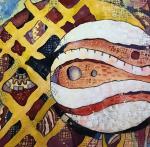 На картине изображены стилизованные сферы-шары, на которых, как и на фоне, проступает разная текстура. Стиль можно отнести отчасти к абстрактному, отчасти к ар-деко.