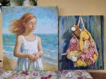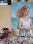 Ключевые слова: славянская девочка интерьерная картина философская живопись ностальгия художественный подарок море тоска по детству символ взросления диптих винтажная живопись белое платье девочка у моря игрушки детство картина маслом масло на холсте