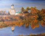 Осень. Храм с золотым куполом на берегу озера.
