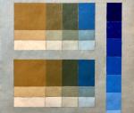 столбец с 8-ю ступенями разбела чистой голубой краской ( верхняя клетка – тюбичная краска Bleu phthalocyanine primaire #11 Pbo XL Studio / PB15 )