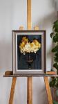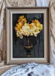 Натюрморт с букетом нарциссов на темном фоне, в стиле старых мастеров, подойдет для подарка, добавит волшебства в интерьер