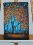 Картина с осенним лесом написана масляными красками на холсте, натянутом на подрамник.