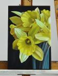 Картина с цветами "Желтые нарциссы" написана масляными красками на холсте, натянутом на подрамник.