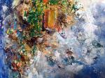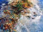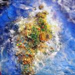 Декоративно-рельефная картина с использованием текстурной пасты, воплощающая образ острова, затерянного в бескрайнем море. Композиция построена на контрасте: насыщенный, многослойный «остров жизни» в центре окружён глубокими, почти космическими оттенками синего, символизирующими водную стихию.