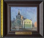 Эта выразительный натурный этюд запечатлела тихую вечернюю сцену русской православной церкви в стиле модерн Воскресения Христова в Сокольниках, силуэты которой, напоминающие луковичные купола, вырисовываются на фоне сумеречного синего неба. Архитектурное великолепие церкви, украшенной сверкающими золотыми крестами, контрастирует с простотой примыкающего к ней здания салатово-зеленого цвета. Голые деревья на переднем плане создают замысловатый кружевной узор, добавляя ощущение спокойствия и глубины. Мастерское использование художником приглушенных цветов и мягких мазков создает безмятежную атмосферу, располагающую к созерцанию. Композиция гармонично сочетает витиеватое и обыденное, демонстрируя уникальное сопоставление, подчеркивающее культурное и духовное наследие этого места. Благодаря тонким деталям и атмосферной перспективе, это произведение искусства прекрасно передает душу тихого русского сумеречного дня в Москве.