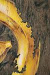 Реалистичные бананы с исчезающим контуром на бронзовом фоне. Глубокая текстура (глубина до 2 мм) с фактурой похожей на экспрессивные мазки кисти проходит через всю картину. За счет использования бронзового масла фон меняет тон в зависимости от угла зрения.
