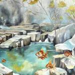 Ключевые слова: символизм современная картина позитивная картина фантазия камни золотые рыбки картина маслом пейзаж пейзаж
