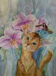 Работа была создана для участия в проекте галереи Стерх, в городе Сургуте на тему "Портрет кошки". В этой работе старалась передать загадочный, таинственный образ кошек, а именно этот кот немного грустный, мечтающий, летающий в облаках. По сути это мой автопортрет, в образе кошки)).