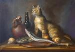 Ключевые слова: рыбная лавка портрет кота с рыбой рыба картина с котом котик маслом рыжий кот натюрморт с животным животные анималистика натюрморт кот маслом картина кот котик кот