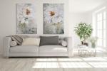 Абстрактные пионы отлично подходят на светлые и темные стены современных интерьеров.