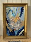 Красивая, яркая картина с пионом. Написана маслом на холсте и декорирована заботой поталью. Оформлена в багет.
