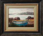 Лодка на берегу. Вечерний пейзаж с рыбацкими лодками.