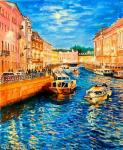 Санкт-Петербург, река Мойка, лодки и катера, белая ночь
