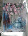 Абстрактный натюрморт про чай с тюльпанами и просто хорошее настроение.