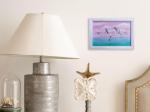 Свободные птицы над спокойной водой выстраивают мягкий ритм движения. Контраст розового неба и прохладной бирюзы усиливает ощущение воздуха и света. Камерный размер позволяет воспринимать работу как личный фрагмент пространства.