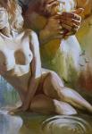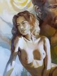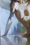 Картина изображает молодую обнаженную девушку сидящую у воды, она мечтательно смотрит вдаль. За её спиной возвышается образ сурового мужчины, о котором она думает
