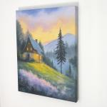 Очаровательный горный пейзаж с лёгким намёком на фэнтези был написан на холсте натянутом на подрамник размера 40х50 см масляными красками. Торцы закрашены, поэтому на стену можно вешать без рамы.
