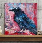 Ключевые слова: небольшая картина ворона картина с вороном с хищной птицей черная птица черный ворон