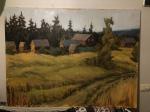 Ключевые слова: интерьерная картина красивая картина золотой час живопись поле домики деревня лето жарко пейзаж