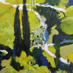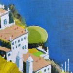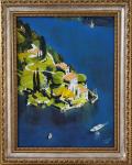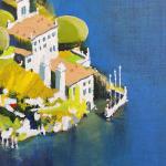 Это яркое месту на берегу озера Комо. На южном солнечном склоне. Из особенностей написания: чтобы добиться внутреннего свечения - склон проложен яркой лимонной краской, который пробивается теперь сквозь лессировки; область воды подстилает подмалёвок из шунгита (чёрная масляная краска из настоящего шунгита) - глубина синего достигнута 3-4 кобальтовыми слоями. Процесс написания занял 2 месяца.