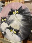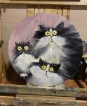 Работа выполнена маслом на холсте , грунтованном на картоне . Три кота