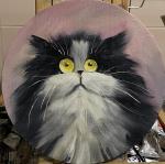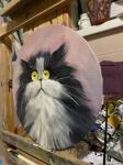 Пушистый чёрный кот с большими и удивленными глазами. Такая работа не останется без внимания публики . Авторская картина
