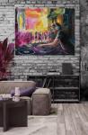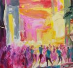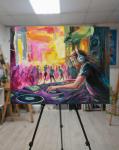 Эта экспрессивная картина погружает зрителя в атмосферу рейв-вечера, где диджей за пультом становится центром музыкального вихря. Яркие, энергичные мазки передают динамику и пульсацию звука, а розовый дым на заднем плане словно оживляет пространство, окутывая танцующих людей в мистическом свете. Картина стремится выразить движение и ритм современной жизни — постоянный поток эмоций, энергии и свободы, которые рождаются в музыке и танце. Через экспрессионистские приемы художник передает не только визуальные образы, но и эмоциональный заряд, заставляющий зрителя почувствовать пульс ночи.
