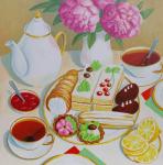 Чаепитие с традиционными питерскими пирожными из кондитерских Метрополя и Севера. Сейчас они активно вытесняются европейскими и американскими сладостями.