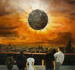 Земля из космоса в 2245 году. В далеком будущем у Земли будут кольца как у Сатурна.