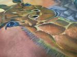 Интерьерная картина ручной работы "Жираф", в меру яркая, красивая, добрая позитивная. Размер 60*80. Материалы : холст, акрил, золотая поталь.