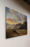 На картине изображены живописные горы Монголии, закат их частично подсвечивает и придает особенность атмосферы. Маленькие юрты на переднем плане кажутся игрушечными в сравнении с величественными вершинами.
