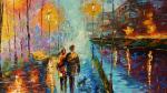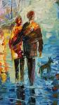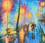 Картина маслом на холсте. Черных Василий. Семейная прогулка по ночному городу